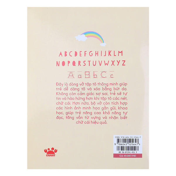Thay thế hoàn toàn vở tập viết truyền thống, bộ đôi sản phẩm thuộc dòng “wipe clean - tẩy xóa dễ dàng” là sản phẩm được sáng tạo phục vụ cho các em nhỏ đang học viết và học số từ 4 tuổi trở lên. Vở được viết bằng bút dạ trên bìa cứng cán bóng; giúp bé tẩy xóa lỗi sai và chơi lại nhiều lần chỉ bằng giấy/ khăn mềm.