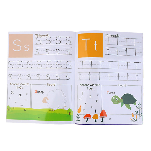 Vở tập viết chữ “HỌC CHỮ CÙNG MUÔN LOÀI” giúp bé học và nhận diện bảng chữ cái, đồng thời chơi những game nhỏ về từ vựng tiếng Anh.