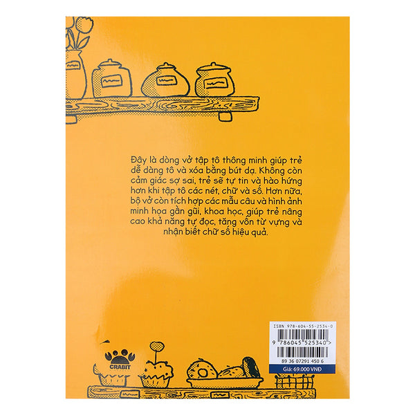 Thay thế hoàn toàn vở tập viết truyền thống, bộ đôi sản phẩm thuộc dòng “wipe clean - tẩy xóa dễ dàng” là sản phẩm được sáng tạo phục vụ cho các em nhỏ đang học viết và học số từ 4 tuổi trở lên. Vở được viết bằng bút dạ trên bìa cứng cán bóng; giúp bé tẩy xóa lỗi sai và chơi lại nhiều lần chỉ bằng giấy/ khăn mềm. Vở tập viết số “HỌC VIẾT SỐ CÙNG BÁC BEN” giúp bé học và nhận diện chữ số từ 1 - 10 cùng một số trò chơi thực hiện nhớ số dễ dàn...