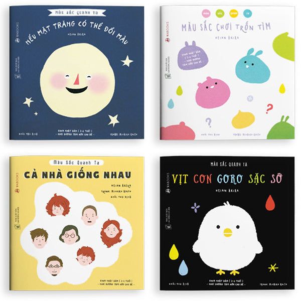 “Màu sắc quanh ta” là bộ sách Ehon gồm 4 cuốn “Cả nhà giống nhau”; “Màu sắc chơi trốn tìm”; “Nếu mặt trăng có thể đổi màu”; “Vịt con Goro sặc sỡ”. Bộ sách phù hợp với trẻ từ 3 tuổi và thông qua các câu chuyện đáng yêu sẽ giúp trẻ nhận biết màu sắc mới, khác lạ hơn so với những màu cơ bản quen thuộc. Qua đó phát triển Thùy chẩm – nơi có vai trò tiếp nhận thông tin qua thị giác, giúp trẻ phân biệt màu sắc, hình ảnh, có ảnh hưởng lớn tới khiếu thẩm mỹ và khả năng nghệ thuật của trẻ.